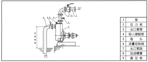 3、為使泵體內(nèi)能夠保持一定的儲(chǔ)存液,以達(dá)到較好的自吸能力和防止機(jī)械密封的干磨擦,必須使泵的進(jìn)口高于泵軸中心線。
