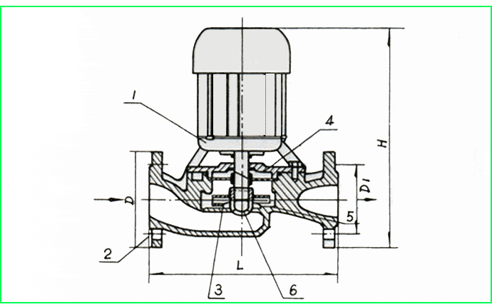 本公司生產的SGR型系列立式熱水管道泵(以下簡稱電泵),管道泵執行標準JB/T6878-2006,本系列產品是為管道增壓輸送,解決管道壓力過低而研制的新穎電泵。由于采用先進機械密封,電機主軸直接安裝葉輪,故有效率高、耗電省、結構緊湊、體積小,重量輕,裝修方便等特點。并可根據揚程與流量的需要并串聯使用。本電泵由電動機,機械密封,水泵三部分組成,電機為單相或三相異步電動機;水泵與電動機之間采用機械密封,電泵轉子軸采用優質碳鋼材料,并經過耐腐處理確保軸有更可靠的機械強度,可有效地提高軸的耐磨性和耐腐蝕性,同時也有便于葉輪的維修和拆卸,泵各固定止口密封處采用"O"形橡膠密封圈作靜密封。