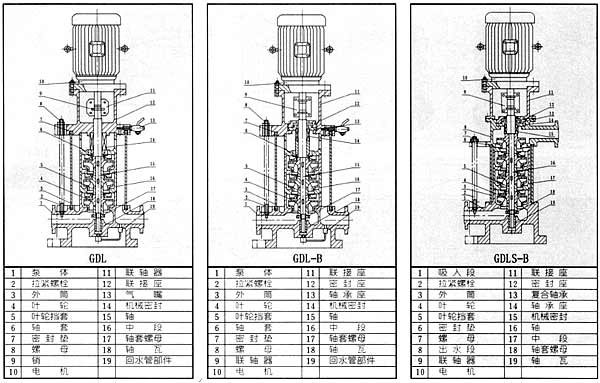 GDL型立式多級管道泵結構類型