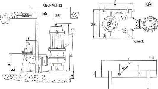 6、單臺潛水排污泵重量大于80kg的室內污水池(集水井)檢修孔上方樓板或梁上應預埋吊鉤,供安裝和檢修時提升潛水排污泵用。